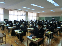 毎週木曜日6限目には全学年で総合的な探究の時間「あじさいタイム」で進路学習を行っています。3年生は進学と就職の2グループに分かれて進めています。
