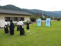 10月16日(土)本校でスポーツ科学コース体験入学が行われ、2名の中学生が弓道部の部活動体験に来てくれました。まず弓道とはどのようなものか、部長が説明をし、簡単な的あて弓具を使って的あてをしました。その後2年生が競射を行い中学生に見学してもらいました。体験に来てくれた2人とも、終始楽しんで弓道体験ができたと思います。鶴来高校に入学の際にはぜひ弓道部に入り、一緒に切磋琢磨しながら人間性をピカピカに磨きましょう。