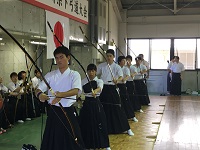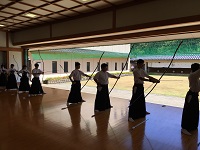 7月31日(火)本校の体験入学が行われ、4名の中学生が弓道部の部活動体験に来てくれました。弓道はどのようなものか、説明をまじえ2年生が演武を行い中学生に見学してもらいました。その後は、実際に的を狙って弓を引いてもらいました。どの中学生も楽しんでいた様子でした。鶴来高校に入学の際にはぜひ弓道部に入ってください。