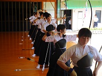 大会参加で、先輩の応援や矢取りの仕事を懸命に行いました。