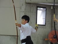 8月1日(火)に普通コース、18日(金)にスポーツ科学コースの体験入学が行われました。どちらも部活動体験の時間が設けられ、先の体験入学では10名の、そして本日のスポーツ科学コース体験入学では1名の中学生が弓道部を訪れてくれました。