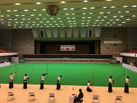 ▲県内でも数少ない完全屋内弓道場    ▲全国選抜に向けて雰囲気を作っての練習