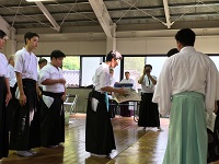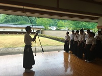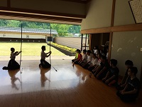 7月31日(火)本校の体験入学が行われ、4名の中学生が弓道部の部活動体験に来てくれました。弓道はどのようなものか、説明をまじえ2年生が演武を行い中学生に見学してもらいました。その後は、実際に的を狙って弓を引いてもらいました。どの中学生も楽しんでいた様子でした。鶴来高校に入学の際にはぜひ弓道部に入ってください。