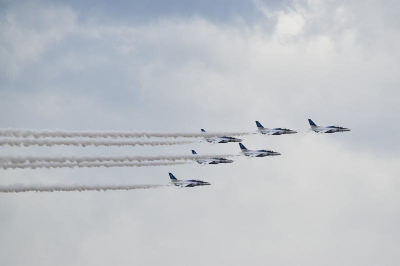 小松基地では恒例の航空祭。根上にもブルーインパルスの編隊飛行をみることができました。