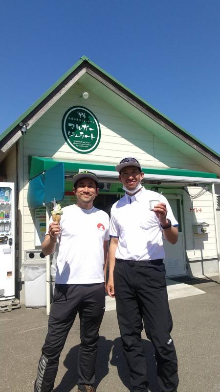 私たち、アルペン・クロスカントリー両顧問も、平成13年度に青森県で開催されたインターハイ以来の学校対抗総合での入賞を果たすべく、心を一つにマルガージェラートで仲良く写真を撮りました。本来であれば、二人でアイスを食べ合いするべきですが、新型コロナウイルス感染症拡大防止の観点から、今回は控えることとしました。。