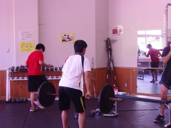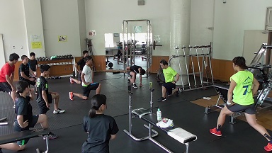 7月後半 アスレティックトレーナーの大崎さんにお願いし、高校生の合同練習会を鶴来高校で行いました。ナショナルチームの石川晴菜さんも飛び入り参加をしてくれました。いろいろな動きのトレーニングからウエイトトレーニングの基本練習と午前中いっぱい多くのことを教わりました。今後も何度かお願いし、よりトレーニングの効果を高められるようにしていきたいです。この時期の汗が冬に生きることを信じてひたすらトレーニングです。