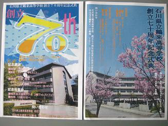 それがこちらの創立70周年のポスター!美術部が6月後半から取り組んだ作品です。まだ候補の段階ですが、ラグビー部と柔道部のモデル協力のもと作成した、2つ目の画像の作品を配布しました。全部で5つある作品の中から、いったいどの作品が70周年ポスターに選ばれるのでしょうか。