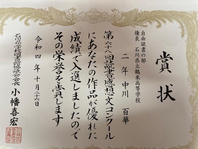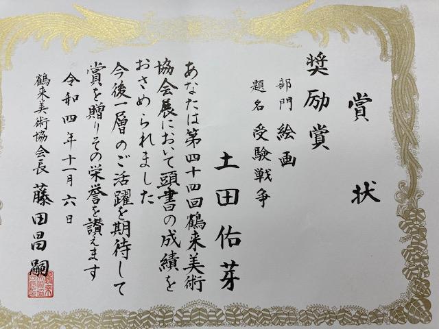 更にこの日から鶴来美術展がクレインの2階で始まり、本校生徒の入賞作が展示されました。表彰式にも参加してくれました。