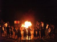その後、班に分かれて野外炊飯、夜はキャンプファイヤーを行いました。