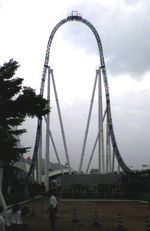 写真は、3大コースターの1つ「ザターン」。最大時速130キロ、65メートルの高さから落ちます。