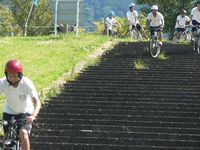本日のマウンテンバイク実習は河原で行いました。メインは階段の昇降です。