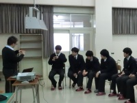 今日は先週に引き続き聴覚に障害のある方と手話通訳の方2名にお越しいただき、実際に手話の勉強をしました。始めに名前や挨拶などを覚えた後、よく使うフレーズや先週習った数字の復習など、たくさんの手話を教えてもらいました。普段指を使い慣れていないので、指がつりそうになっている生徒もいましたが、繰り返し練習してたくさんの言葉を使えるようになっていました。これが入口となって誰とでもコミュニケーションができるようになってほしいと思います。