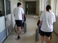 今日は、介護福祉基礎の授業で車椅子の操作方法を学びました。