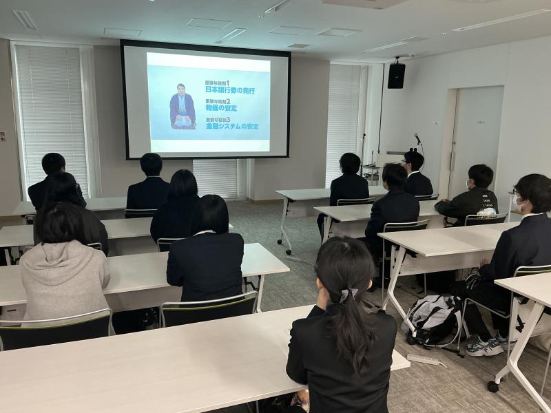 教科書で学ぶ「金融政策」や「中央銀行の役割」について、実際の現場を見ることで理解を深めるとともに、金融機関への職業観を養うことを目的として実施しました。