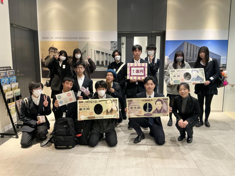 本校の地歴公民科(公共・政治経済)の学習活動の一環として、1年生から3年生の希望者12名が日本銀行金沢支店を訪問しました。