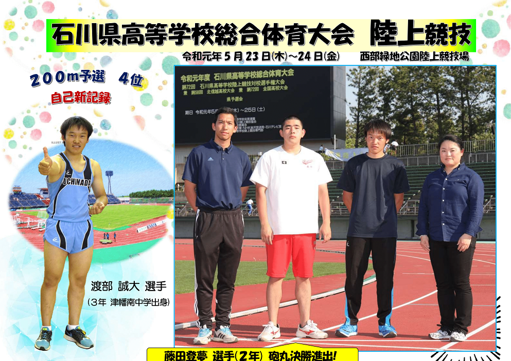 ボクシング競技フライ級では寺田 烈(2年大徳中卒)が優勝し、全国総体(インターハイ)に出場します。ボウリング競技女子個人で山口朱蘭(2年内灘中卒)、自転車競技平木健太・平木祥太(2年泉中卒)・寺西駿貴(2年内灘中卒)が北信越大会に出場します。また、女子サッカー部は第3位と確実に力をつけてきています。男子サッカー部も健闘しました。部活動を通して、生徒一人ひとりの成長につなげていきたいと考えております。