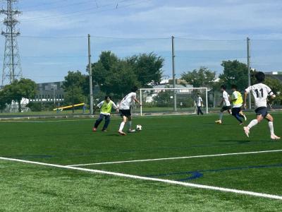 少しずつ本校サッカー部も形になりつつある場面が見られたものの、やはり基礎的な動き出しやコミュニケーションの甘さもあり、思ったプレーができないシーンもありました。日々の練習の質は少しずつ上がってきていると思いますが、やはり試合経験でしか学べないこともあると再認識しました。