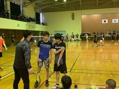 団体戦では、金沢西高校に敗れましたが、21Hアラシロユキオ・22H岩﨑絆のダブルペアは個人戦でベスト32・22H藻寄裕羽は個人戦シングルスで2勝し、ベスト64となりました。 このように、練習の成果を発揮できた部員が多かったように思います。しかし、悔しい思いをした部員も多く、1か月後の総体に向けて日々の練習や練習試合に臨んでいきたいと思います!さらなる進化を目指し、内灘高校バドミントン部は頑張ります!