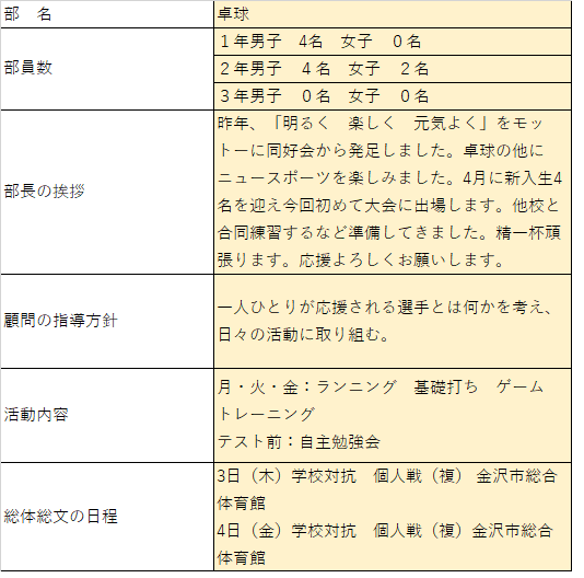 また、今日は新入生の予備入学でした。たくさんの部員が入ってくれるといいなと思います。