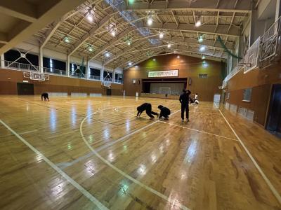 最後の日は全員で身体を動かしながら、体育館の掃除を行いました。