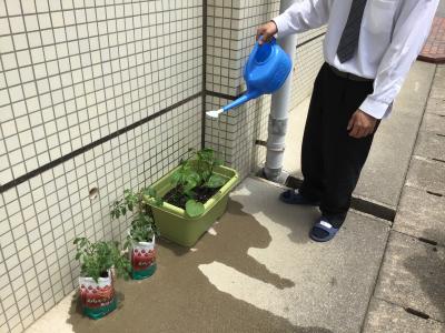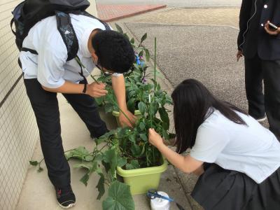 現在はプランターで野菜作りに挑戦しています。なすとピーマン、トマトとキュウリを植えました。収穫した野菜は自分たちで持ち帰って調理をし、どんな調理をしたのか部員のみんなで報告し合う予定でいます。新型コロナウィルス感染症の影響で思うように活動できないこともありますが、今できることを部員みんなで考えて、協力しながら、新たなことに挑戦し、楽しんで活動していきたいです。