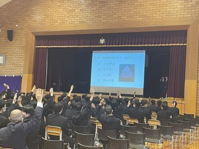 12/23(火)の午後、3年生の球技大会を行いました。競技はバレーボールです。この3年間で様々な行事に取り組んできましたが、3年生にとってはこれが最後です。得点を取ったときの喜びの声、仲間への励ましの声が体育館いっぱいに広がっていました。大会後には優勝チームと先生チームのエキシビションマッチも行われ、とても盛り上がりました。大会をしっかりと運営してくれた生徒の皆さん、ありがとうございました。