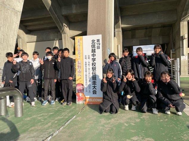 11/22(土)、長野市で行われた北信越中学校駅伝大会に、本校男女陸上部の駅伝チームが出場しました。大会は男女とも、各県代表3チームずつに開催県15チームを加えた30チームで行われました。本校の選手たちは、それぞれ持てる力を十分に発揮して力走し、襷をつなぎました。