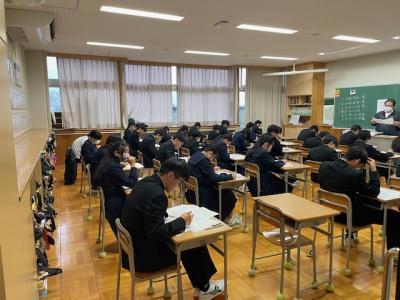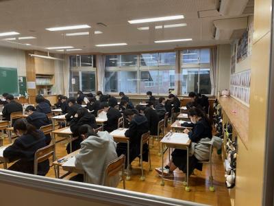 本日12月3日、3年生は郡市統一テストに臨みました。どの学級の生徒も真剣な態度で取り組んでいました。3年生の皆さん、おつかれさまでした。
