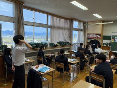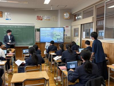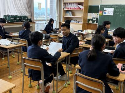 11/25(火)、県教育委員会の先生方をお招きし、1年生英語の研究授業を行いました。生徒たちは楽しみながら英語でコミュニケーションを行っていました。