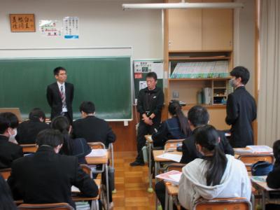 校長講話では「”なりたい自分を本気で目指すこと”が自分を大切にすること、優しい人になって他者を大切にすること」についての話でした。また、宮前先生と兼田先生に、中学校時代の目標や進路決定の過程について話をしていただきました。学習担当からは学習目標の振り返り冬休み中の家庭学習について、生徒指導からは2学期の残り3週間を大切に過ごすことについての話がありました。また、養護教諭から感染症予防についての話がありました。