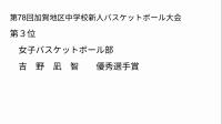 女子は1回戦で西南部中に41-25で、2回戦は小松南部中に58-32で快勝しました。準決勝では加賀ネクシリスに46ー59と勝利には届きませんでしたが、堂々のベスト4進出、3位入賞です。また、吉野凪智が優秀選手賞に選ばれました。おめでとうございます。