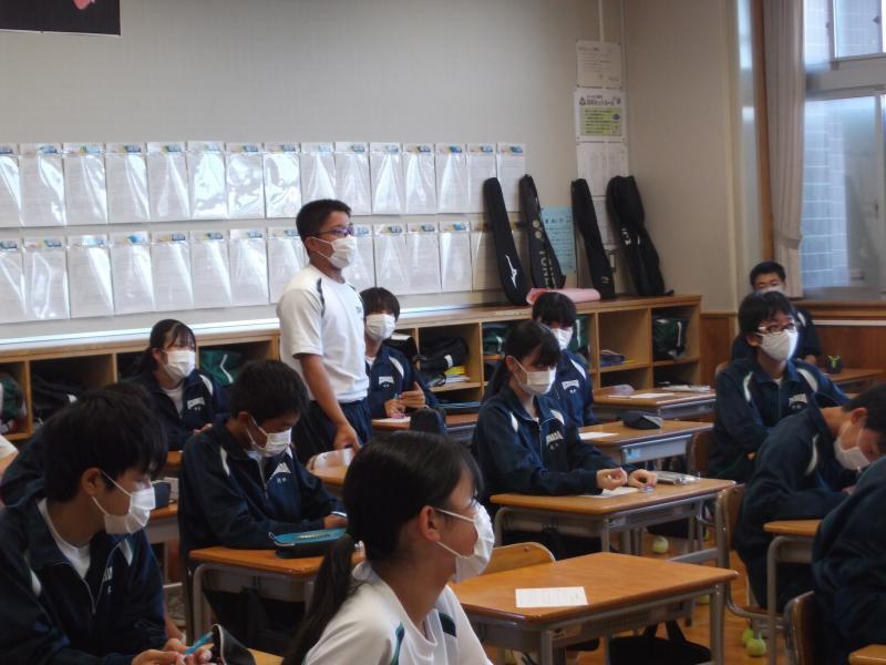 高校での学習の様子や行事についてなど、高校のHPでは分からないことをいろいろ話してくださいました。また、中学生のときにやってお