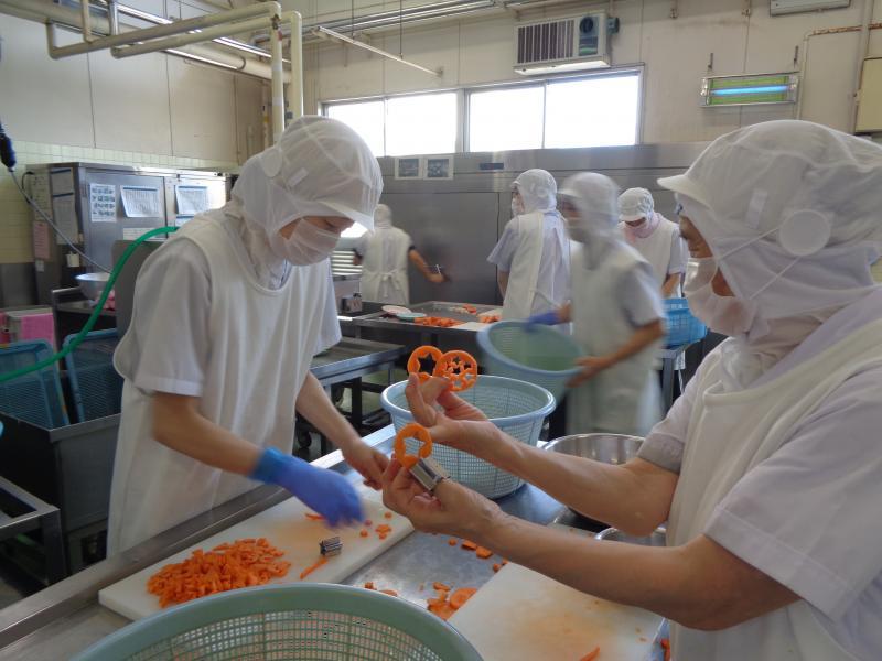 コロッケとゼリーは星の形をしていました。そして、みなさんが健康に過ごせるようにと願いを込めて、調理員さんがチキンカレーライスのにんじんを星型に型抜きをしてくださいました。給食時間に星型にんじんに気づいた生徒は、とても喜んでいました。ちなみに、校長先生のカレーライスにも星型発見!
