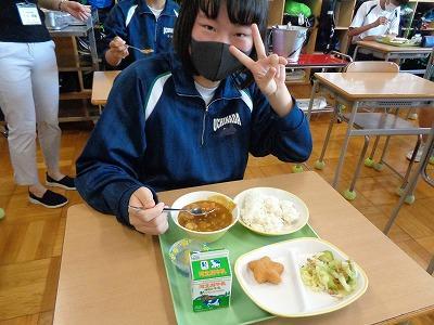 昼休みには「おいしい!!」「栄養満点で体にいい献立だった」などの声が聞かれました。これから家庭科の授業で応募献立作りに取り組む1年生には参考になったのではないかと思います。この取組みを通して毎日何気なく食べている給食や地場産物についての関心を高められたのではないかと思います。