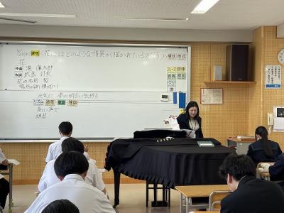 11/25(火)、県教育委員会の先生方をお招きし、1年生英語の研究授業を行いました。生徒たちは楽しみながら英語でコミュニケーションを行っていました。