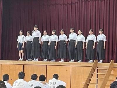 最後に生徒会長による「今日から体育祭に準備に入りましょう」という呼びかけの後、全校生徒で「がんばるぞー、おー」と声出しをしました全校生徒皆さんの主体的な動きに期待します
