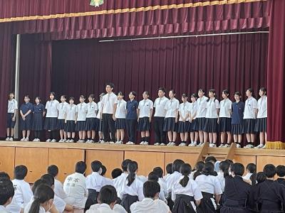 10月の文化祭・合唱コンクールに向け、自由曲が決まったクラスから練習をしています。生徒たちは元気に歌っています。