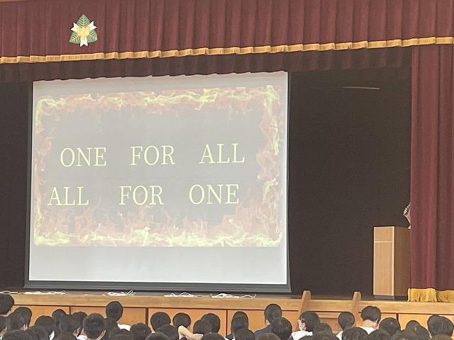 最初に生徒会長から今年度の体育祭テーマが発表されました。
