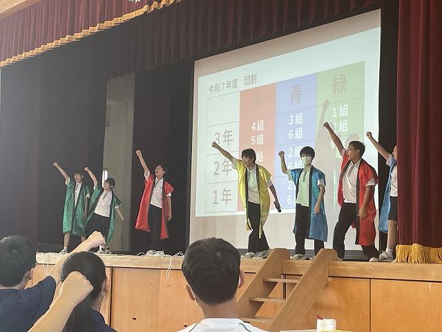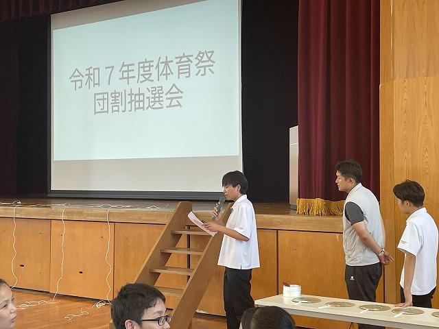 7/3(木)、全校集会の後半で体育祭・団割抽選会が行われました。
