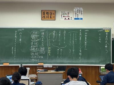生徒たちは互いの作文を読み合って助言をしています。友だちからの助言をもとに、推敲に取り組みます。