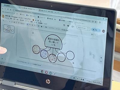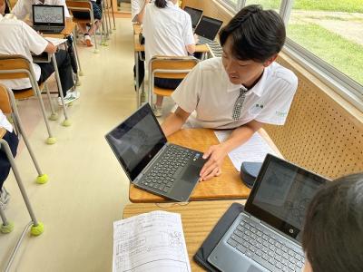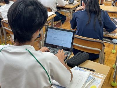 10月に行われる文化祭・合唱コンクールに向けて、音楽の授業では自由曲を選んでいます。生徒たちは候補の曲を聴き、クロムブックを用いて投票を行います。