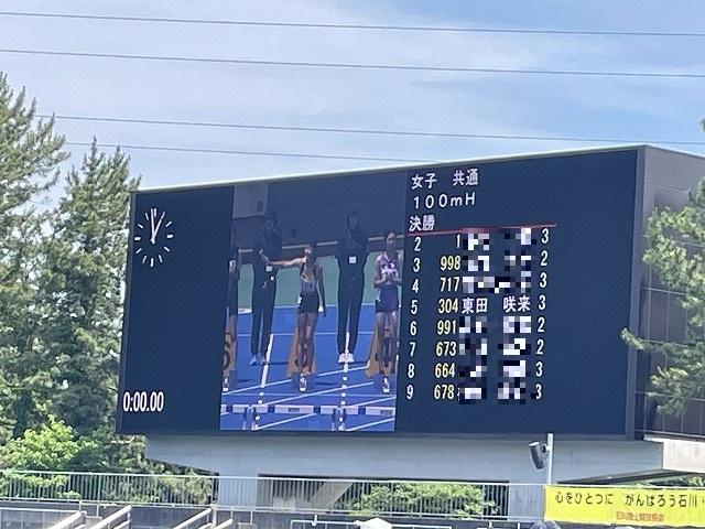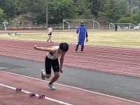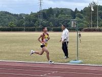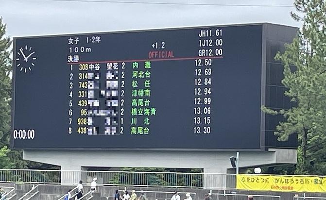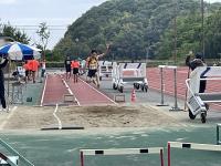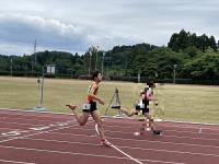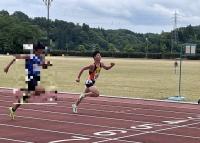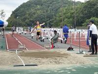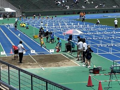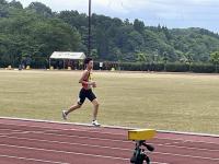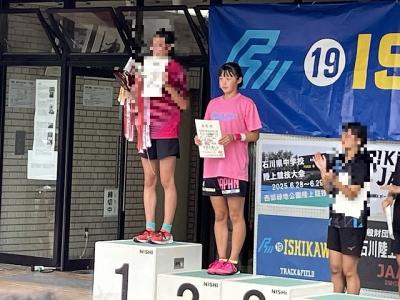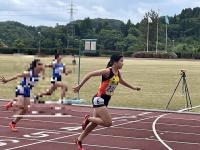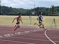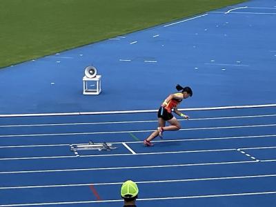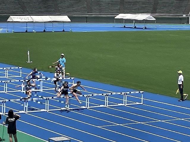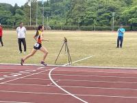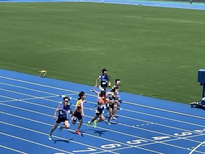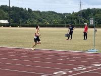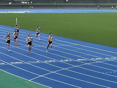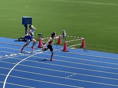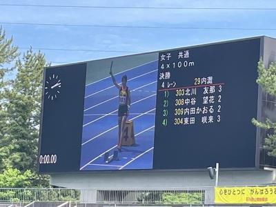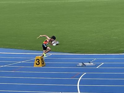 うれしいお知らせです。西部緑地公園陸上競技場で行われている県陸上競技大会の2日目、女子100mハードルで、本校陸上部の東田咲来さんが全中参加標準記録を突破し、沖縄県で行われる全国大会への出場権を獲得しました。東田さんは2年連続の全国大会出場の快挙達成です。東田さん、おめでとうございます。