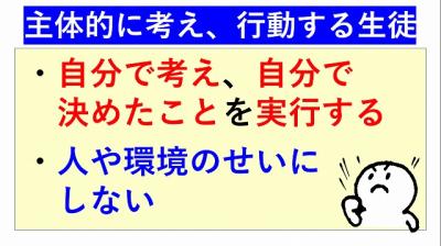 生活指導からは、言葉遣いについての確認がありました。授業中は公的な言葉を使用しましょう。「親しき仲にも礼儀あり」です。