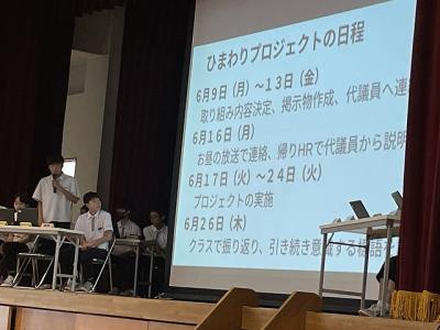 この日に出た多くの取組案の中から生徒会執行部が取組案を決め、全校生徒で取り組みます。