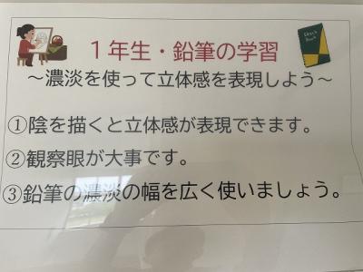 「1年生・鉛筆の学習」では、見本の絵を見て、そっくりに鉛筆でデッサンを描いたものです。