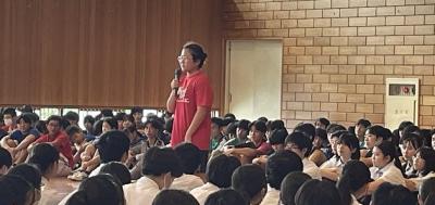 本校では、「ひまわりプロジェクト」と題して、生徒会執行部が中心となり、いじめ防止に向けて取り組んでいます。取組内容は先日の生徒総会に、全校生徒が参加して話し合いました。