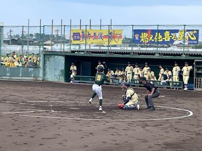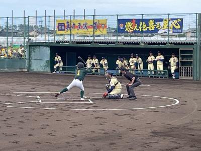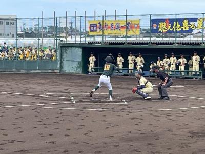 【野球】金沢市で行われている大会の1回戦、星稜中との試合に、本校野球部が出場しました。果敢な打撃で先制し、序盤は接戦となりました。勝利には届きませんでしたが、強豪相手に素晴らしい試合、全員が精一杯のプレーを見せてくれました。選手の皆さん、素晴らしい試合をありがとうございました。顧問の池島先生、濵田先生、お疲れ様でした。保護者の皆さま、応援ありがとうございました。