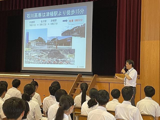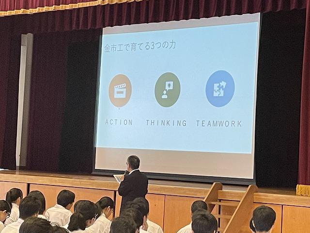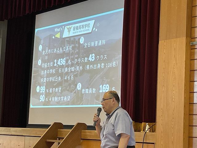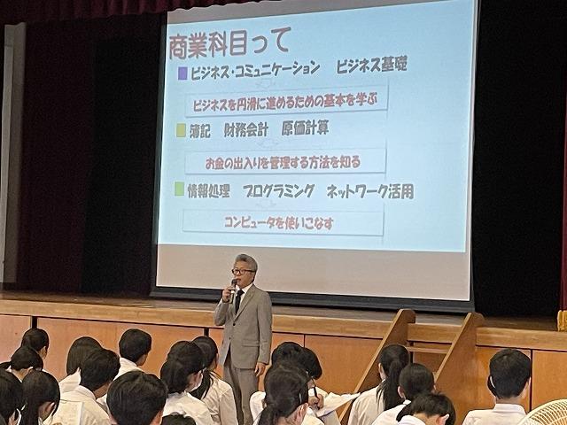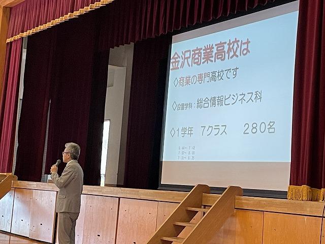 多様な進路に対応したコースを選択できることや、就職や進学、将来の仕事に生きる資格を取得できること等について説明していただきました。金沢商業高校の先生方、本当にありがとうございました。