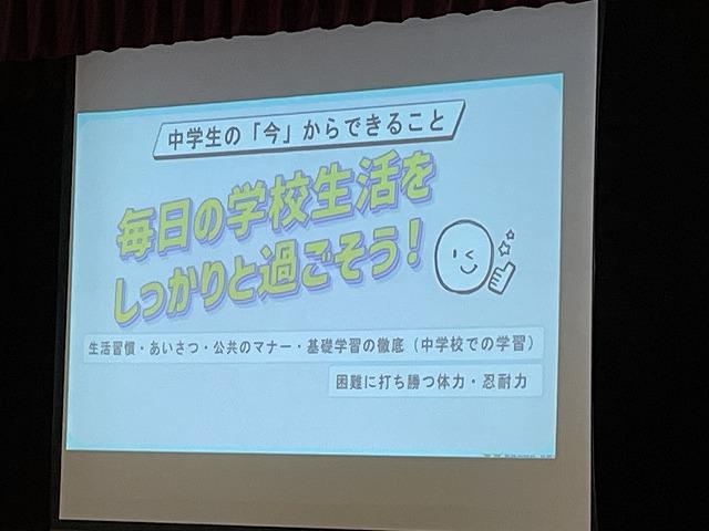 高校の先生方からは、高校の特色や卒業後の進路、「中学生の今するべきこと」等について分かりやすく説明していただきました。本日のお話を参考にして、生徒たちには悔いのない選択とそのための努力を期待しています。各校の先生方、本当にありがとうございました。保護者の皆さま、ご参加いただき、ありがとうございました。
