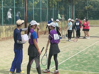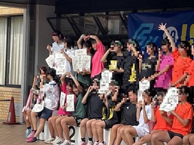 個人戦では、男子ダブルスで3位入賞、県大会出場決定です。おめでとうございます。男子シングルスでは舞木さんが3位入賞しましたが、代表決定戦の結果、県体出場を逃しました。女子個人も県体出場には届きませんでしたが、全力でプレーすることができました。